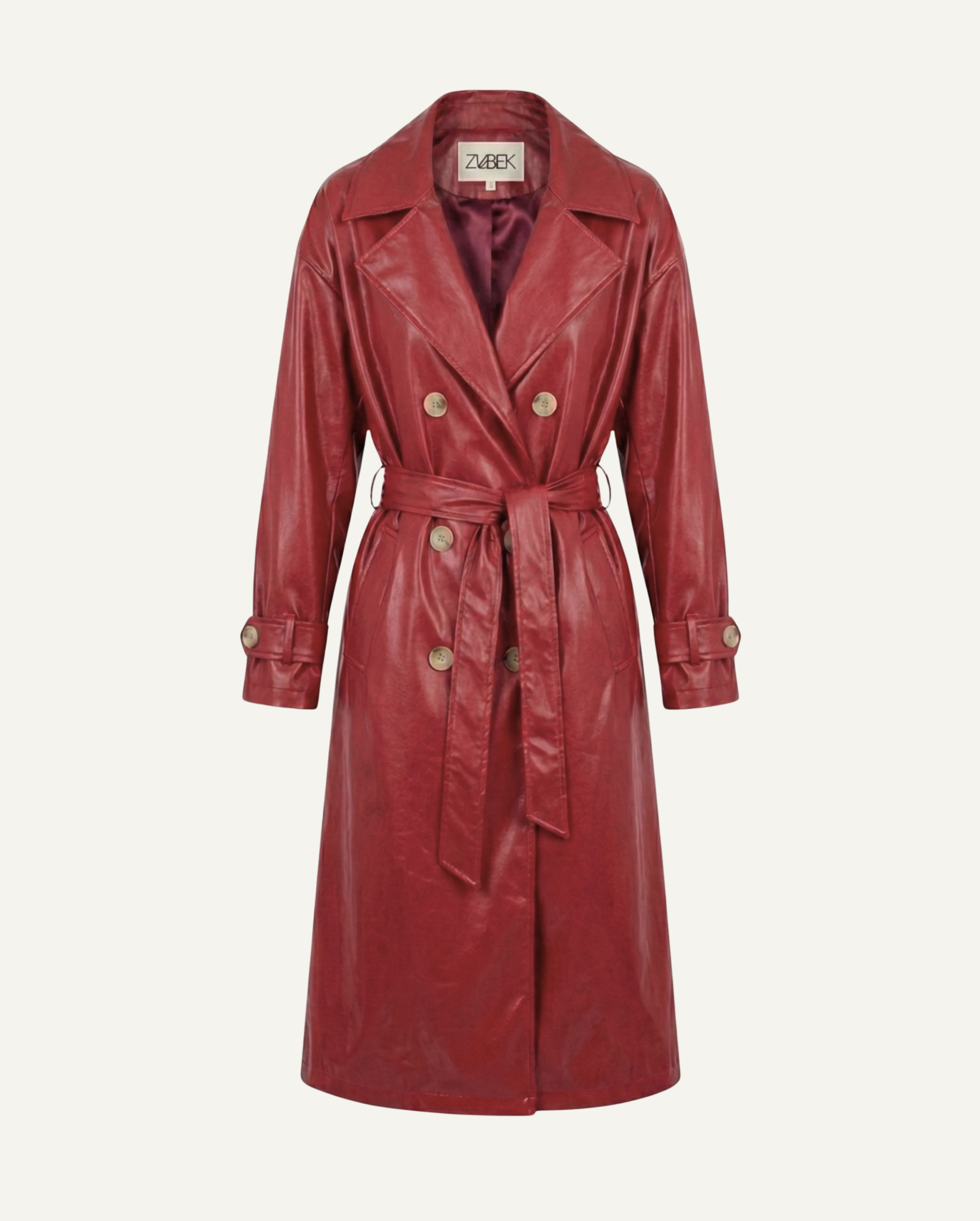 This oversized trench is your go-to outer layer for every season that calls for a statement. Cut from crisp 100% cotton in a soft, sky-toned blue and fully lined in a rich dark wine blend of lyocell and wool — it’s where everyday function meets refined, feminine edge.